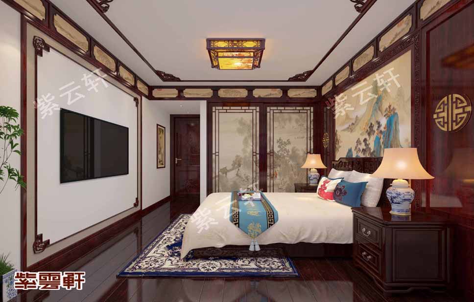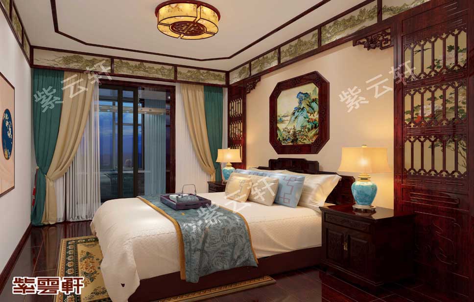 次卧中式装修,如同雾气氤氲的水面,给人一种朦朦胧胧的神秘感,搭配着合宜的灯光,一雕一刻都在散发着古典的韵味和无穷的生机。