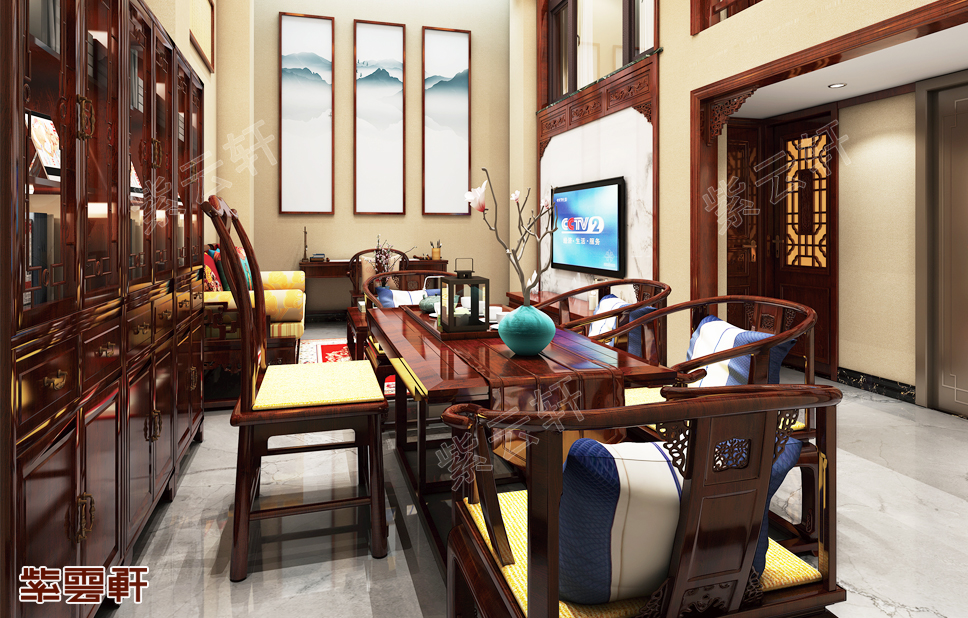 二层书房中式装修,文雅之士最爱诗书之意,琴棋之雅,品茗之趣,旧时才子或居于庙堂之上,或志存山水之间,无不腹有诗书,中式书房更是锦上添花,真是一处梦寐以求的精神之地!