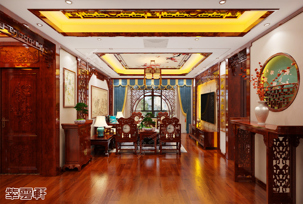客厅是最讲究装修的一个房间,是主人在家里的时候使用频率最高的一个房间,也是客人到来时主要使用的一个房间。中式装修设计历经多年沉淀,继承了明清时期家居理念的精华,为现代家装注入新的灵魂。