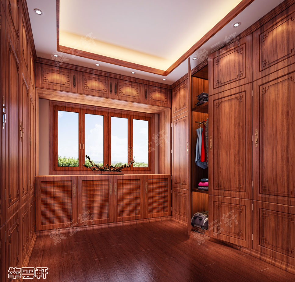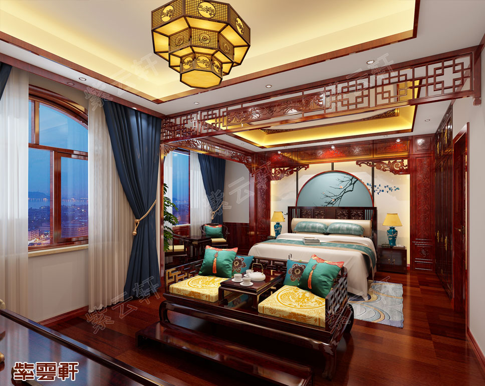 卧室,红木地板与墙板装饰,加上线条简洁流产的复古家具,完美展现了中式装修设计的庄重大气。充满文艺范的床头画、清新雅致的台灯,与自然、原木的家具配饰相呼应,整间卧室有序地连接成一个整体,每个角落都散发着赏心悦目的美。
