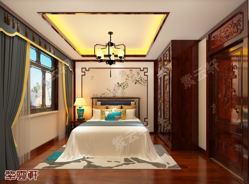 卧室是真正可以让人放松心情、回归自我的地方,也是家中最安心的地方。红木橱柜给人稳重的感觉,强大的收纳功能也能满足家庭的收纳需求。背景墙唯美雅观,浓浓的古韵充盈在整个空间里,营造出一种宁静致远的感觉。