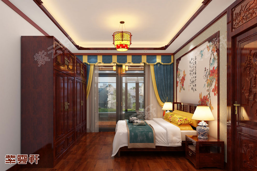 卧室,复古温馨的整体氛围将房间衬映的十分典雅简约,床头极赋灵韵的水墨画作十分雅致,通透的推拉玻璃门使整体看上去十分明朗。卧室是家庭装修设计中最重要的一部分,一般会根据居住的人群进行设计,而中式传统风格可以适应不同的年龄段人群,让人充分感受舒适感。