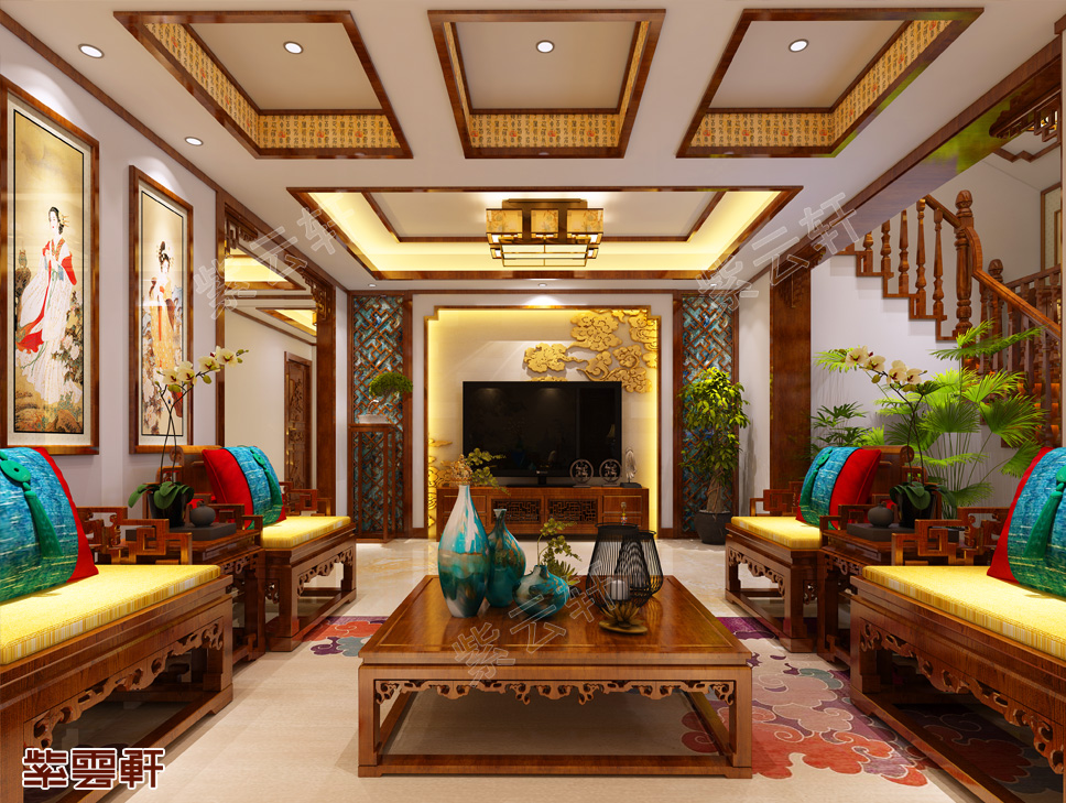 客厅,软装与硬装上的中式元素的运用,成就中式客厅的精华,追求深沉中尽显华贵,中式风格的古色古香与现代风格的简单素雅自然衔接。