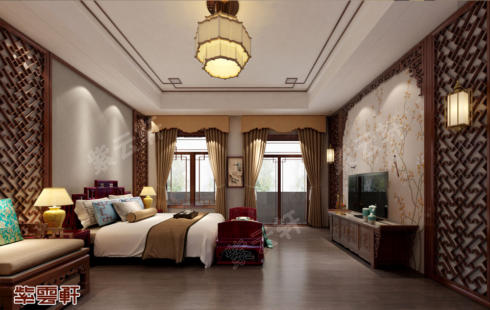 卧室,古典卧室以古典主义风格文化为背景,营造的是极富中国浪漫情调的生活空间,其中红木、青花瓷、紫砂茶壶以及一些红木工艺品都体现了浓郁的东方之美,这也是古典主义风格与其它风格的不同之处,住宅中式设计的时间越久越能散发出迷人的东方魅力。