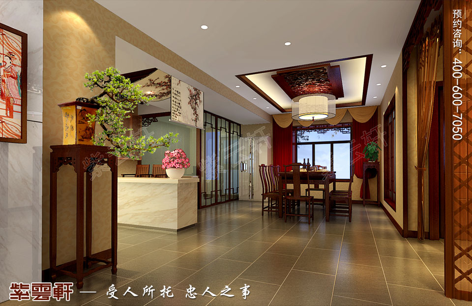餐厅,中式装修风格中常用的餐桌和椅子都是红木的,再加上非常精致的枝形吊灯装饰,使整个餐厅非常美丽优雅。为了让餐厅不那么单调,入口处摆放的绿植,营造出一种活跃氛围这样一个非常有中式设计的代表性,创造了一种宏伟的感觉。